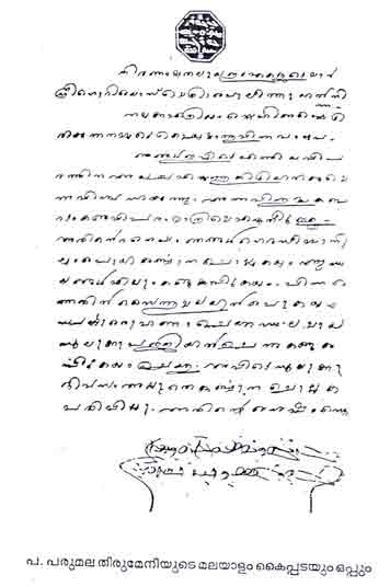 Malayalam Handwriting of St Gregorios Parumala